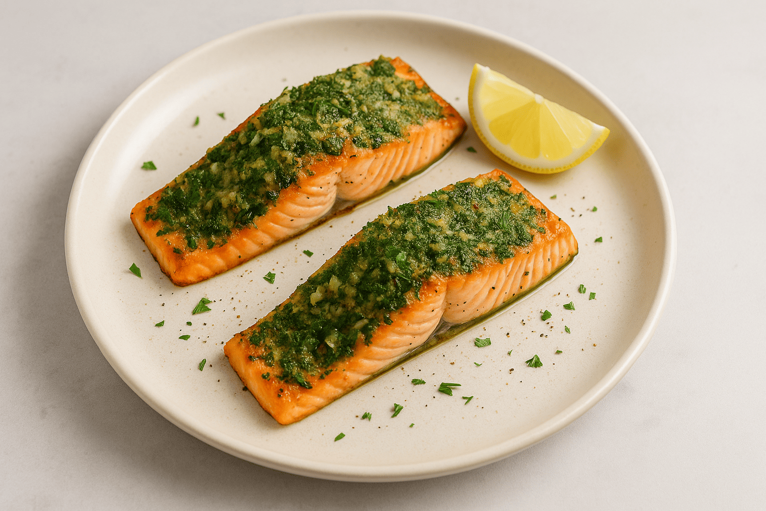 Healthy, flavourful, and ready in under 15 minutes — this Air Fryer Salmon with Garlic Herb Crust is perfect for a fast and nutritious dinner. The air fryer locks in moisture while giving the fillets a lightly crisped, herby top.
