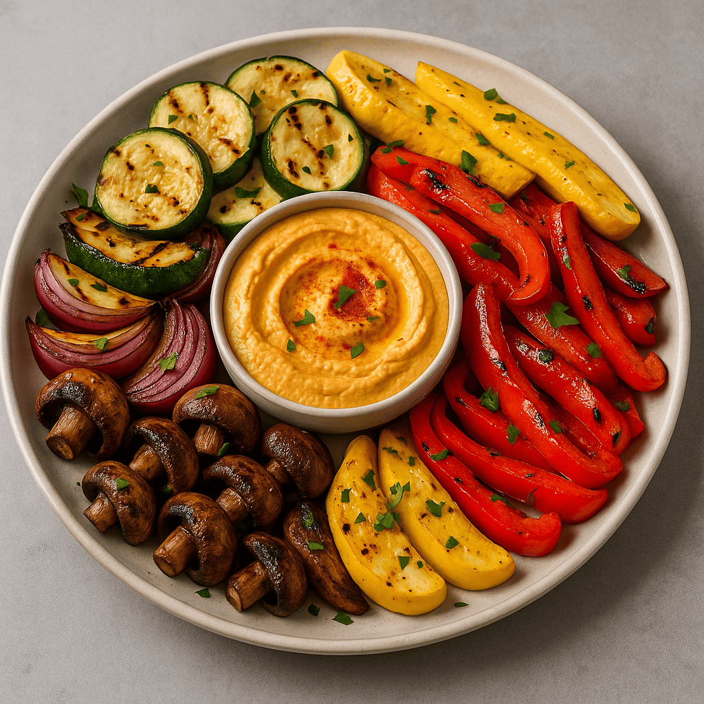 Fresh, vibrant, and smoky — this Chargrilled Veggie Platter is the ultimate way to celebrate vegetables on the BBQ. With grilled zucchini, capsicum, mushrooms, and more, served alongside a creamy smoky hummus, it’s a show-stopping side or a complete light meal.